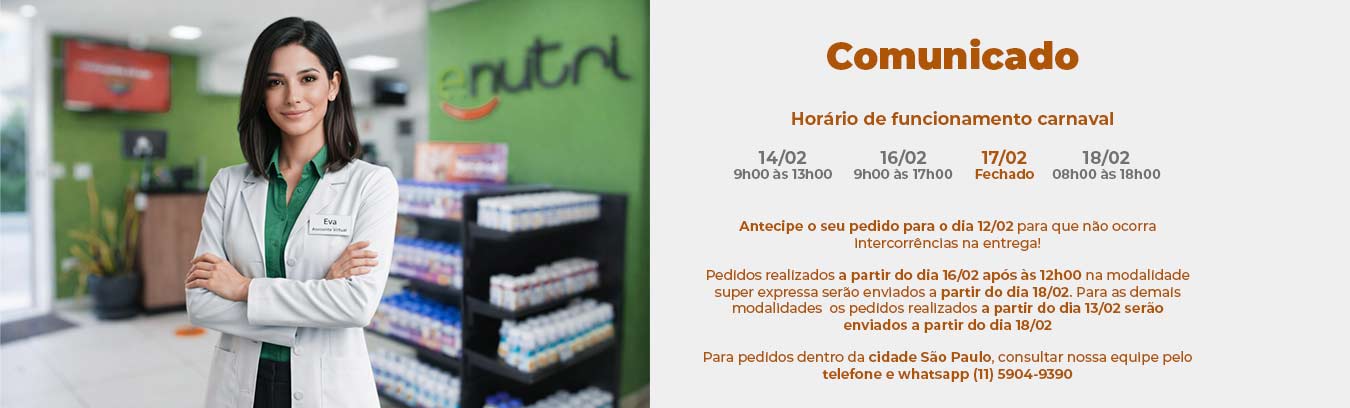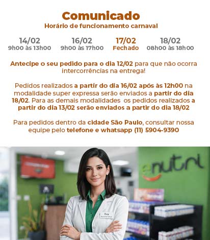 Amei, a experiência que tiver com minhas compras na E- nutri. Fiz pedido pela manhã e durante o dia eles me enformavam sobre o status do pedido. No fim do dia eu recebi os produtos. Parabéns pela transparência, rapidez e pelo carinho com os clientes